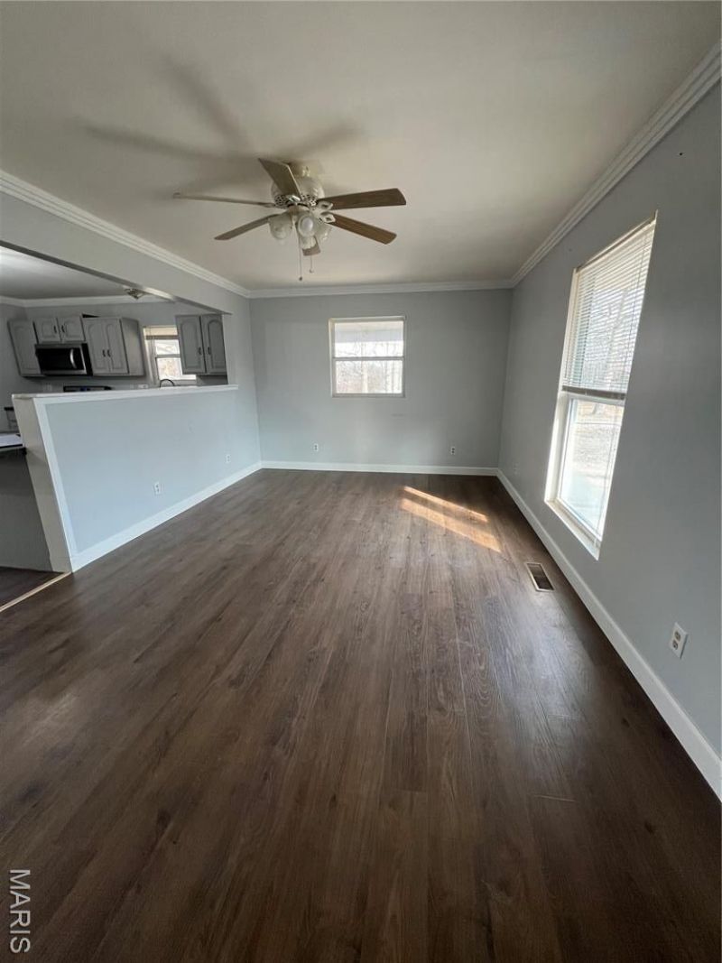 Great 3-bed 2-bath home on 5+acres. Easy access to I-44. The home features large rooms and lots of extra living area in the walk out basement if needed. The yard is very large and level, perfect for gardening and lots of room for an outbuilding or garage. There is also a large fenced in area in front for children or your fur babies. This property has lots of potential for addition, garage etc... and no HOA.